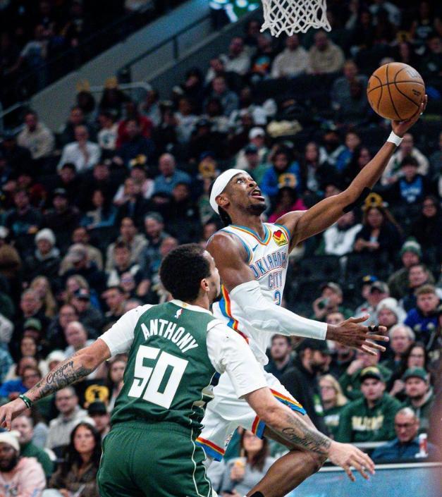 在多达七名队友无法出战的情况下,亚历山大责无旁贷,扛起了球队的进攻大旗,在雄鹿想尽办法限制他发挥的情况下,仍然靠着19次出手命中16球的超高效率,贡献了40分、7个篮板、11次助攻和1次抢断的全面个人数据。